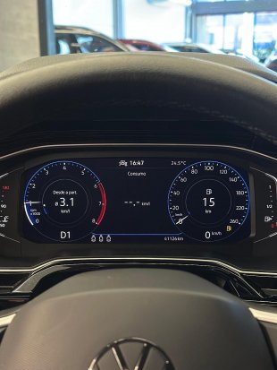 Traz tecnologia de ponta com painel digital, central multimídia VW Play, sensores, câmera de ré e piloto automático adaptativo.